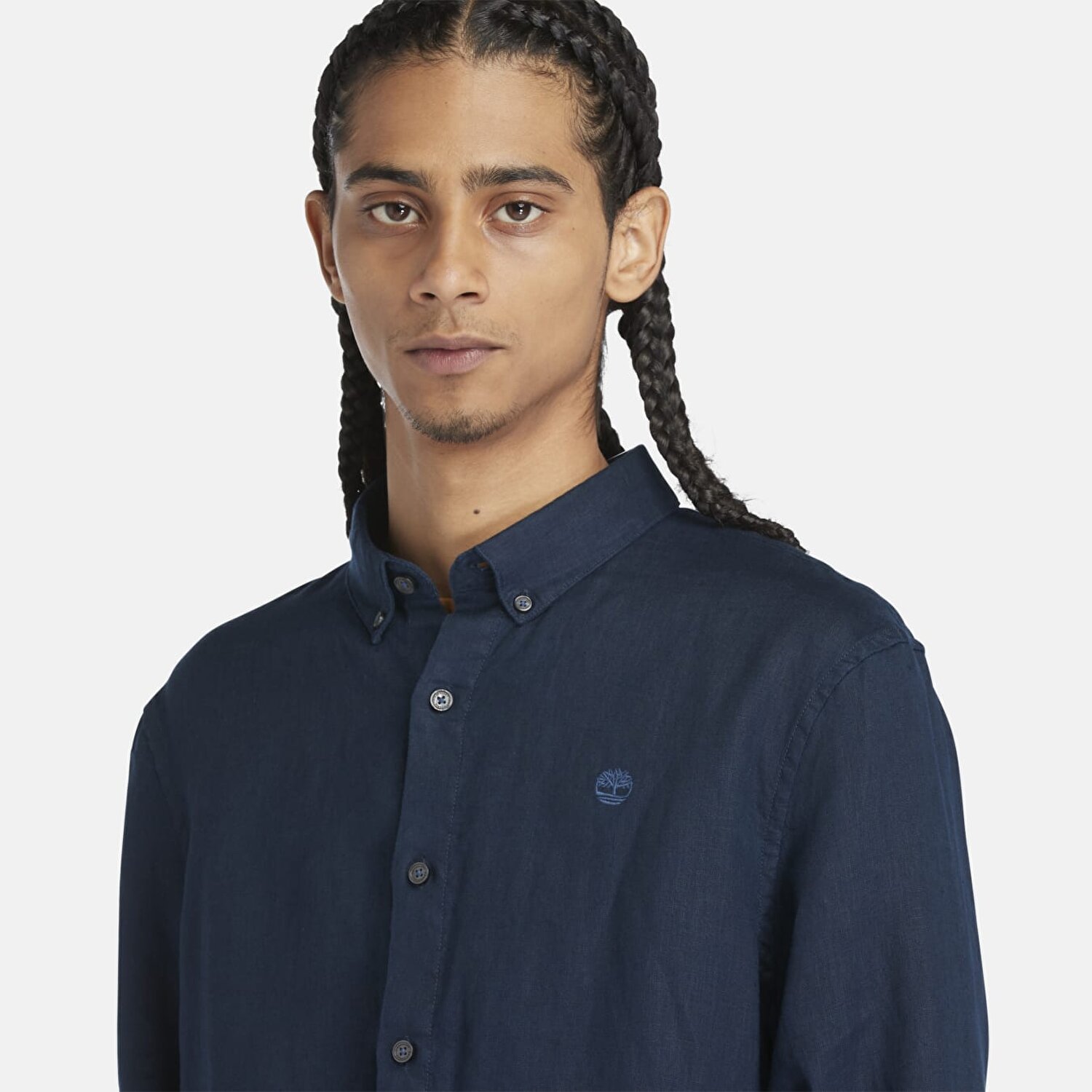 Erkekler için tasarlanmış bu %100 ketenden üretilmiş uzun kollu gömlek, ince bir silüete, yuvarlak manşetlere, kontrast biye detaylarına ve göğüs kısmında işlemeli bir logoya yer vermektedir.